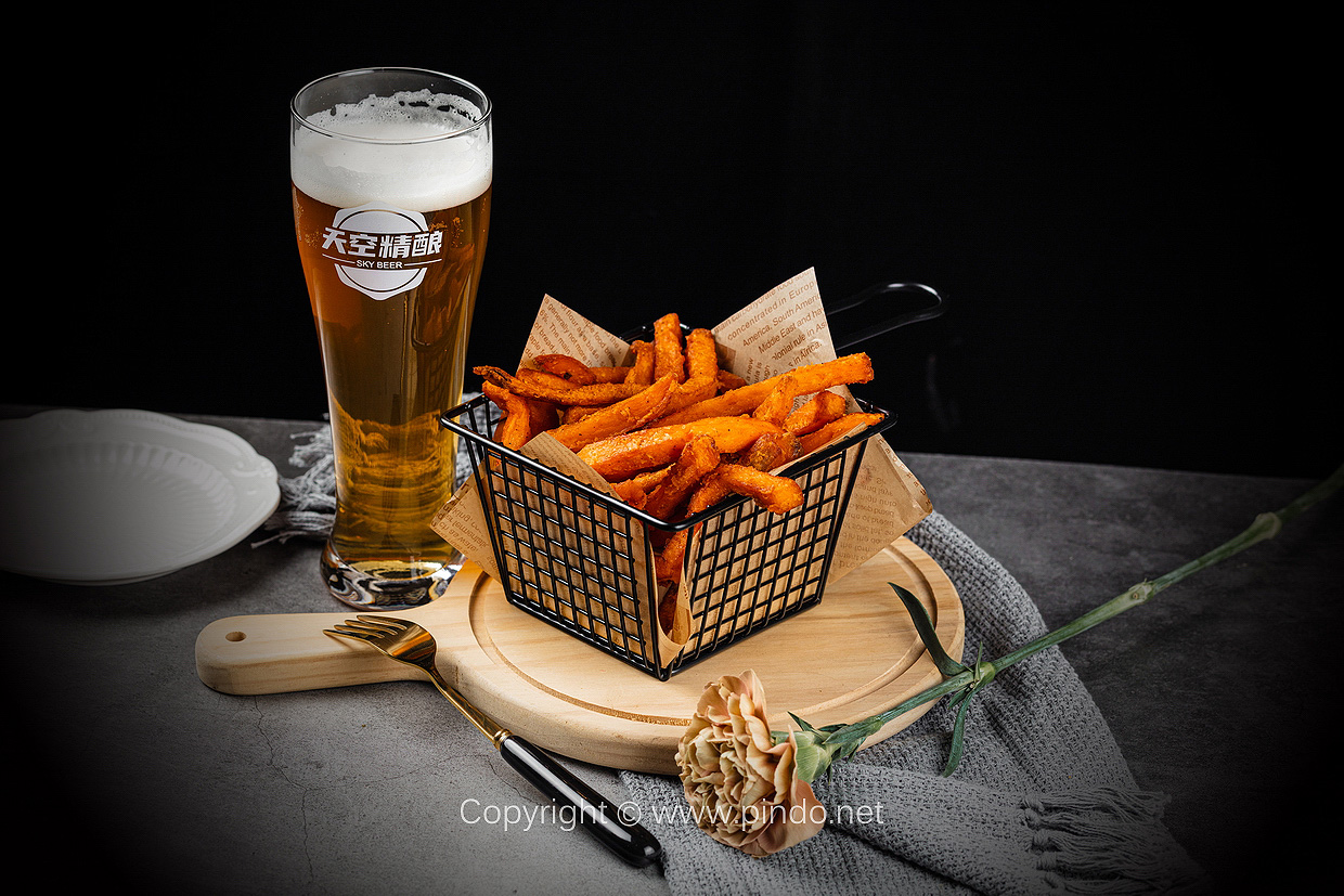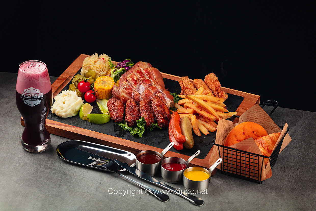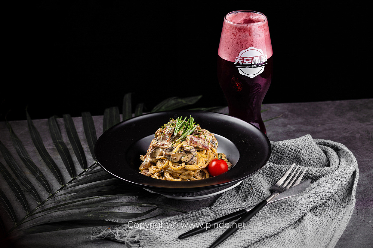 品度商业摄影为淄博天空之橙双创艺术空间餐厅拍摄的一组创意料理照片。天空之橙作为淄博新晋打卡拍照地儿,每一个地方都是时尚调调,为配合店内的天空精酿这次店内新推出精致料理。
